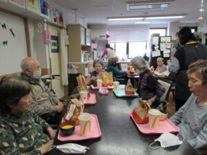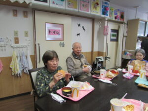ご利用者のご希望で、マクドナルドのハンバーガーが、食べたいとの意見で、提供させて頂きました。
